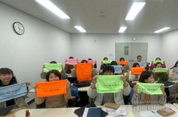 간담회 마지막에는 참석자들이 생명존중 홍보 타월을 들고 “자살예방에 앞장서겠습니다”라고 함께 다짐하며 지역사회 생명존중 문화 확산 의지를 다졌다.