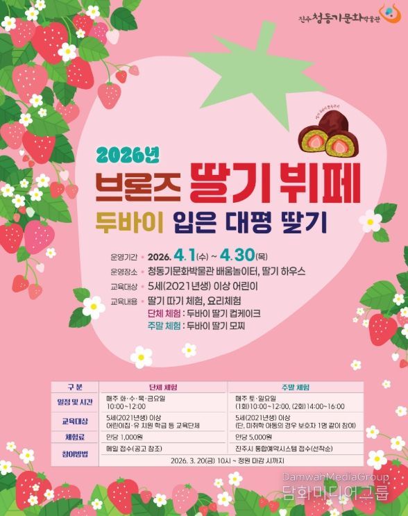 시민행정신문 강갑수 기자 | 진주시는 4월 한 달간 ‘진주청동기문화박물관’에서 대평면 특산품인 딸기를 활용한 교육 프로그램 ‘브론즈 딸기 뷔페: 두바이 품은 대평 딸기’를 운영한다.