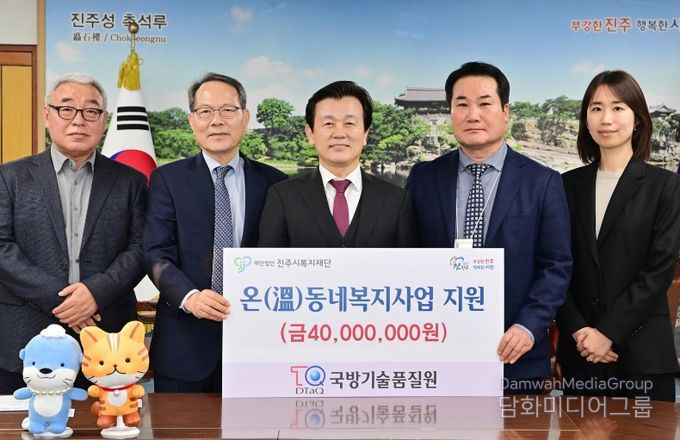 시민행정신문 강갑수 기자 | 국방기술품질원은 지난 17일 시청 기업인의 방에서 지역사회 어려운 이웃을 돕기 위해 성금 4000만 원을 진주시복지재단에 기탁했다.