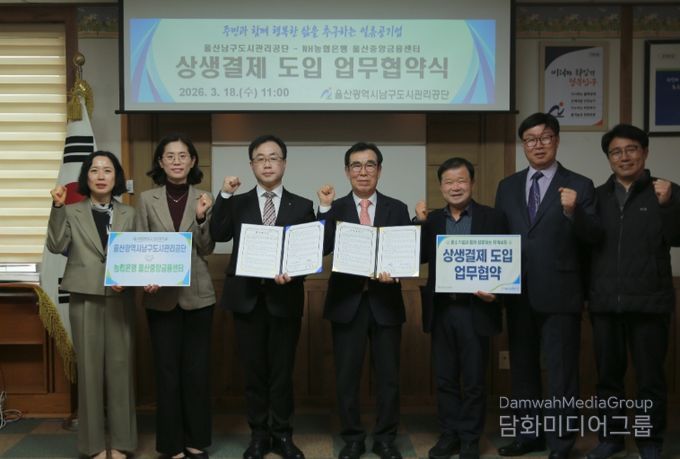 시민행정신문 이세훈 기자 | 울산남구도시관리공단은 18일 농협은행 울산중앙금융센터와 중소기업 상생환경 조성을 위해 상생결제 시스템 도입과 확산을 위한 업무협약을 체결했다.
