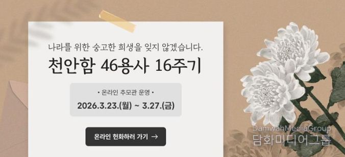 이어 오는 27일에는 태조산공원 내 천안보훈공원에서 천안함 46용사 16주기 추모식을 엄숙히 거행할 예정이다. 이날 행사에는 천안함 유족, 보훈단체장, 전사자 모교 학생 등 100여 명이 참석해 용사들의 희생을 기리고 그 뜻을 기념하는 시간을 갖는다.