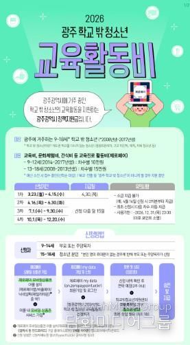 광주광역시는 학교 밖 청소년의 교육 기회를 확대하고 안정적인 성장을 뒷받침하기 위해 ‘학교 밖 청소년 교육활동비 지원사업’을 운영키로 하고, 오는 23일부터 신청을 받는다.