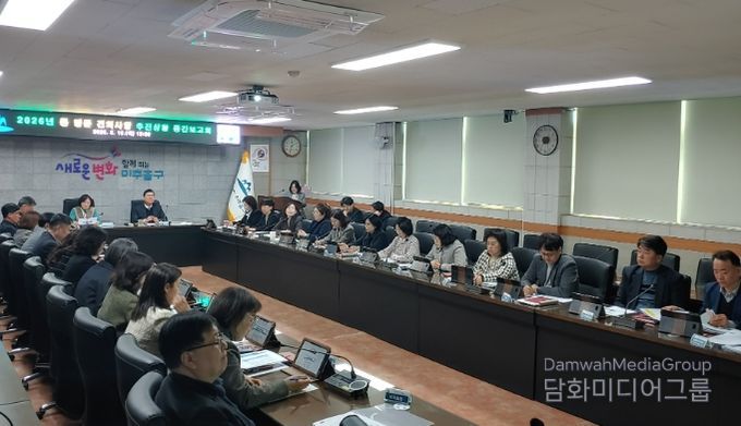 시민행정신문 강갑수 기자 | 인천 미추홀구는 지난 19일 구청 중회의실에서 간부 공무원 등 40여 명이 참석한 가운데, ‘2026년 동 방문 구민 공감, 소통 도시 미추홀구 건의 사항 중간 보고회’를 개최했다.