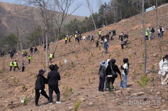 참석자들은 편백나무 묘목 7천500그루를 심으며 탄소흡수원 확충과 범국민 나무심기 실천의 의미를 함께 나누고, 주변 산림 22ha의 면적에 조성되는 편백숲이 전국을 대표하는 아름답고 거대한 명품숲으로 탄생하길 염원했다.