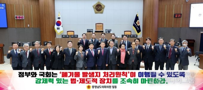 이에 충남도의회는 ▲발생지 처리 원칙의 실질적 이행을 위한 강제력 있는 법·제도적 장치 마련 ▲수도권 폐기물의 지방 이전 구조 개선 및 폐기물 처리 공공성 강화 법률 추진 ▲국가 책임 아래의 공공 폐기물 처리시설 확충및 주민 지원·상생 제도 법제화 등을 정부와 국회에 촉구했다.