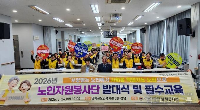 시민행정신문 강갑수 기자 | (사)대한노인회 남해군지회는 지난 24일 남해군 노인복지관 3층 대강당에서 소속 10개 단체 200여 명의 자원봉사 단원이 참석한 가운데 ‘2026년도 남해군 노인자원봉사단 발대식 및 노인자원봉사자 교육’을 성황리에 개최했다.