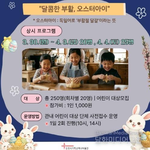 사전 신청으로 참여할 수 있으며, 아이들이 반죽으로 달걀 모양 쿠키를 만드는 체험을 통해 부활절의 의미와 교육적 가치를 동시에 제공할 것으로 기대된다.