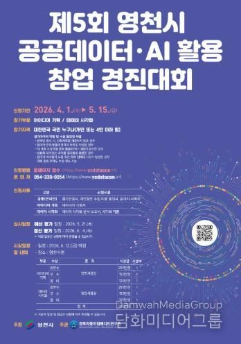 시민행정신문 강갑수 기자 | 영천시는 공공데이터와 AI 기술과 융합한 창의적인 아이디어를 발굴하기 위해, 4월 1일부터 5월 15일까지 ‘2026년 제5회 공공데이터·AI 활용 창업 경진대회’ 신청을 접수한다고 밝혔다.