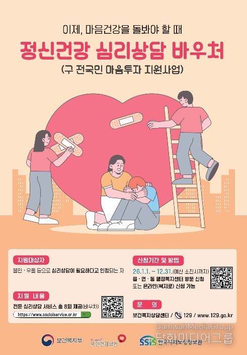 지원 대상은 일정 요건을 충족하는 구민이다. 신청자는 ▲정신건강복지센터·대학교 상담센터·청소년상담복지센터 등 공공 심리상담기관의 의뢰서 ▲정신의료기관의 진단서 또는 소견서 ▲국가건강검진 결과통보서상 중간 정도 이상의 우울 판정 ▲자립준비청년 및 보호연장아동 관련 확인서류 ▲재난피해자 피해사실 확인서 또는 피해자 인정결정서 ▲정신건강복지센터·자살예방센터 등록증명서 중 하나를 갖추면 된다.