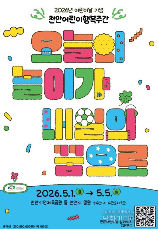 시민행정신문 강갑수 기자 | 천안시는 제104회 어린이날을 맞아 내달 1~ 5일 천안시 일원에서 ‘2026 천안어린이행복주간’을 운영한다고 6일 밝혔다.