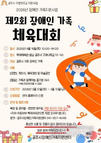 이번 행사는 장애인 가족 간 유대감을 형성하고 지역사회 내 긍정적인 교류를 확대하기 위해 마련될 예정이며, 가족 단위 참여 중심의 체육 프로그램을 통해 자연스럽게 소통하고 협력할 수 있는 기회를 제공할 예정이다.