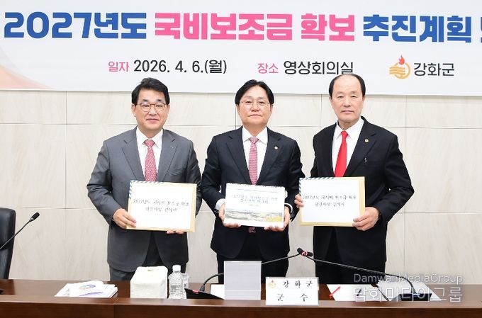 박용철 강화군수는 “국비 확보는 지속 가능한 강화군의 미래를 좌우하는 핵심 과제”라며 “군수가 앞장서 관계기관을 직접 방문하는 등 적극적으로 나설 것이며, 전 직원 또한 주인의식을 갖고 사업예산이 반드시 확보될 수 있도록 총력을 다해 달라”고 당부했다.