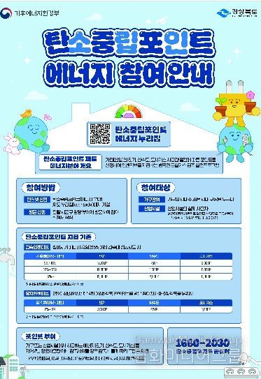 시민행정신문 김학영 기자 | 경상북도는 도민의 탄소중립 실천을 유도하고 온실가스 감축을 확대하기 위해 ‘탄소중립포인트제(에너지·자동차 분야)’ 참여자를 모집한다.