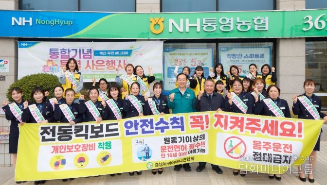 시민행정신문 강갑수 기자 | 통영시녹색어머니연합회(회장 엄회진)는 지난 3일 북신동 삼성생명 사거리에서 유관기관들과 합동으로 전동킥보드, 전동자전거 등의 개인형이동장치(PM, personality mobility) 등 교통 안전사고 예방 캠페인을 실시했다.
