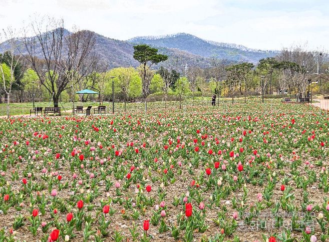 시민행정신문 강갑수 기자 | 천안의 대표 명소인 삼거리공원 너른뜰 튤립정원에 10만 송이의 튤립이 꽃망울을 터트리며 시민들에게 봄의 설렘을 전하고 있다.