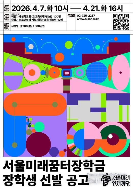 시민행정신문 강갑수 기자 | 서울미래인재재단은 기존 서울꿈길장학금의 지원 대상을 확대하고 유형을 세분화하여 ‘서울미래꿈터장학금’을 신설한다. 재단은 비인가 대안학교 재학생은 물론 가정 밖 청소년까지 총 112명을 선발하고, 총 2억 3,600만 원 규모의 학업 장려금을 지원할 계획이다.