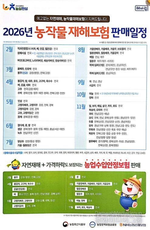 가입 기간은 품목별로 다르며, 해당 품목을 재배하는 농업인은 가까운 지역농협에서 가입하면 된다.