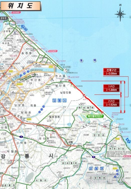 도로 개설이 완료되면 70여년 간 단절됐던 강릉 남부권 해안 경관도로가 하나로 연결되어 동해안 최고의 드라이브 코스로 거듭날 전망이다.