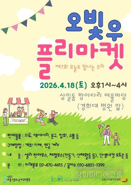 올해로 7회째를 맞는 이 축제는 강동구의 아이들이 직접 기획하는 행사로, 매년 다양한 체험 활동을 통해 아이들에게 큰 호응을 얻어왔다. 올해는 '플리 마켓'을 주제로 오후 1시부터 4시까지 진행되며, 아이들이 직접 만든 물품이나 중고물품을 11개 부스에서 판매한다. 수익금은 판매에 참여한 아이들이 직접 갖도록 해 경제관념을 키울 수 있는 기회도 함께 마련했다.