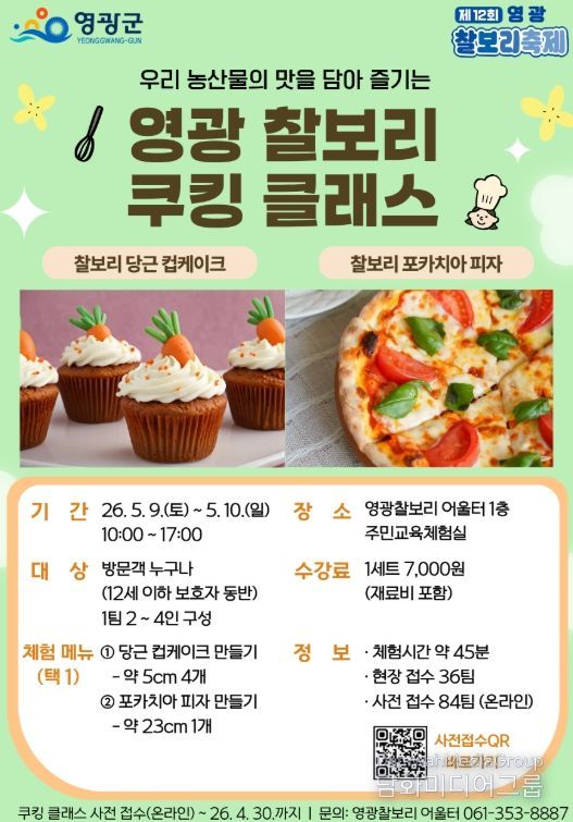 영광군 관계자는 “찰보리를 활용한 체험과 소비를 동시에 경험할 수 있는 이번 프로그램을 통해 지역 농산물의 가치를 널리 알리고자 한다”며 “많은 관광객과 군민들의 관심과 참여를 바란다”고 전했다.