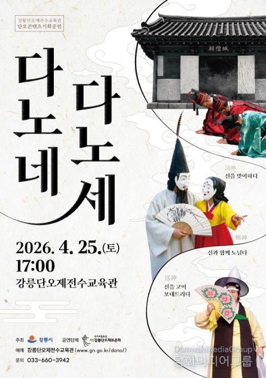 시민행정신문 강갑수 기자 | 강릉시 강릉단오제전수교육관은 강릉단오제의 전승발전과 의미를 쉽게 전달하기 위해 오는 25일 오후 5시 강릉단오제전수교육관 공연장에서 '다노네, 다노세' 공연을 개최한다.