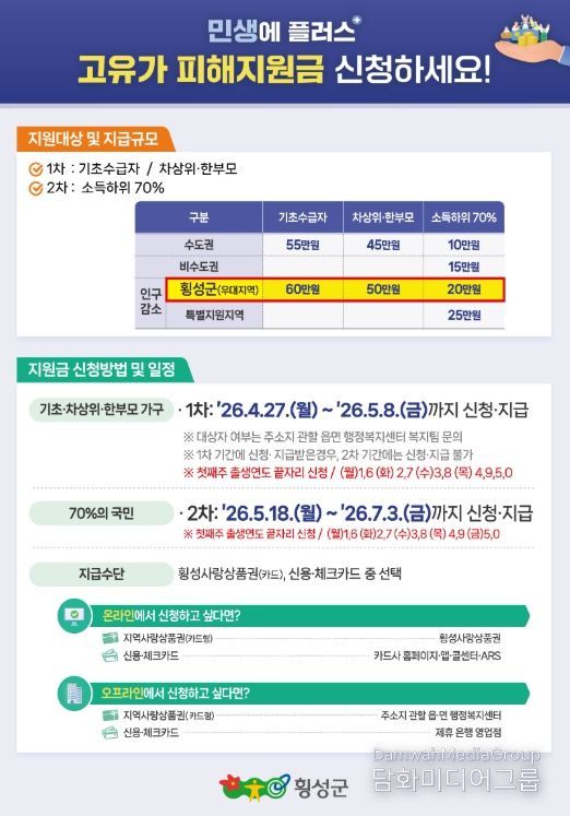 대상자 확인 등 추가 문의는 횡성군 고유가 지원금 콜센터 또는 각 읍·면 행정복지센터에서 가능하다.