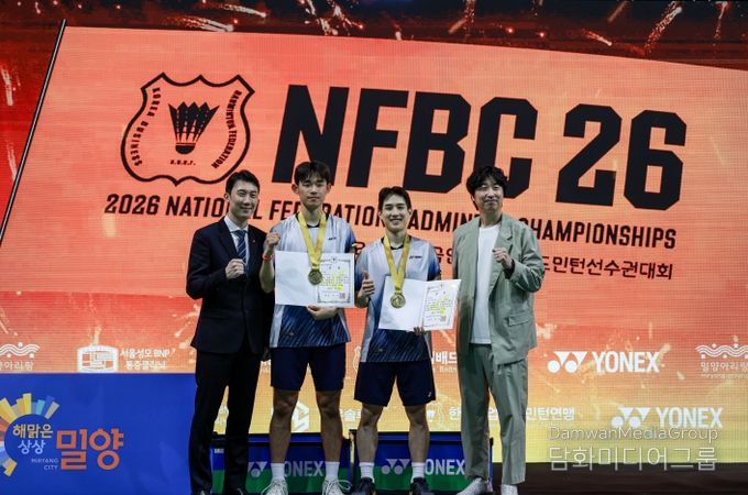 전주시청 배드민턴팀은 지난 13일부터 22일까지 경남 밀양시 배드민턴경기장에서 열린 ‘2026 연맹회장기 전국실업대학배드민턴선수권대회’에서 한요셉·박다연 조가 남자 일반부 복식 종목에서 우승을 차지했다고 밝혔다.