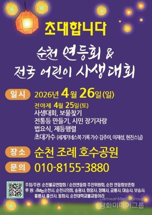 시민행정신문 강갑수 기자 | 불기 2570년 부처님 오신 날을 맞아, 순천의 밤을 자비의 등불로 수놓는 ‘2026 순천 연등회’가 오는 26일 조례호수공원 일원에서 화려하게 막을 올린다.