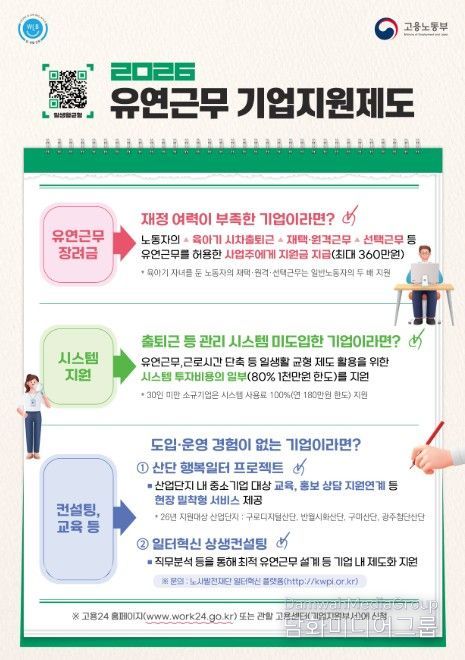 다만, 중소기업의 경우 인력 운영 부담, 시스템 구축 비용, 보안 문제 등으로 유연근무 도입과 활용에 어려움이 있는 것도 현실이다. 이에 정부는 기업 여건에 맞는 맞춤형 지원을 통해 민간 확산을 적극 뒷받침하고 있다.