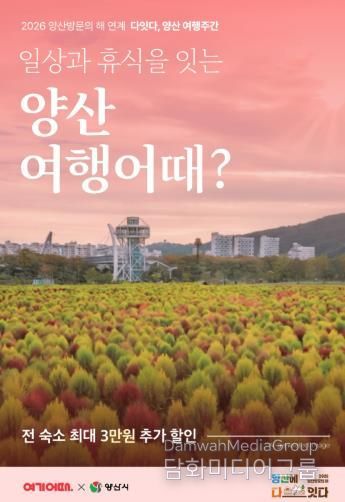 시민행정신문 강갑수 기자 | 양산시는 ‘2026 양산방문의 해’를 맞아 당일형 관광에 치중된 여행 패턴을 관내에서 하룻밤 머무는 ‘체류형 관광’으로 전환하면서 지역 관광 산업에 활력을 불어넣기 위해 추진한 숙박 할인 프로모션 ‘다잇다, 양산 여행주간’이 관광객들의 높은 이용률 속에 개시 일주일 만에 종료됐다고 밝혔다.
