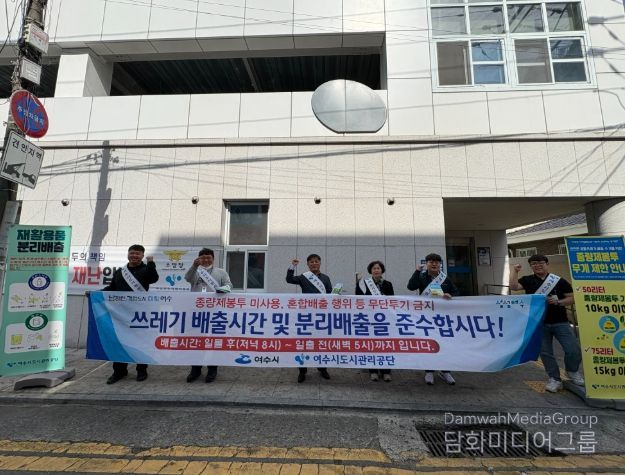 시민행정신문 김학영 기자 | 여수시도시관리공단은 2026년 4월 24일 학동 선소상가 일원에서 생활폐기물 배출질서 확립을 위한 현장 집중 홍보 활동을 실시했다.