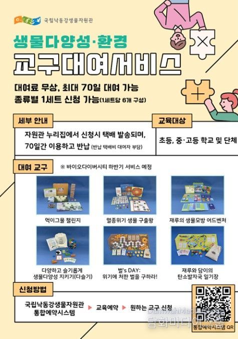 시민행정신문 김학영 기자 | 기후에너지환경부 산하 국립낙동강생물자원관은 학교 및 교육기관을 대상으로 4월 27일부터 ‘교구 대여 서비스’와 ‘온라인 생물·환경 교실’ 참여 신청을 받는다고 밝혔다.