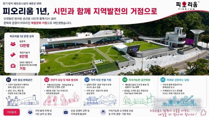 정량 지표와 함께 현장 변화도 확인된다. 방치 공간이 문화공간으로 바뀌면서 도시 이미지는 달라졌고, 시민은 생활권 가까이에서 문화를 이용할 수 있는 공간을 갖게 됐다. 관광객에게는 전통관광에 더해 새로운 관람 요소가 더해졌다. 폐자원시설 개선, 시민 안전사고 예방, 문화향유 확대, 지역 홍보효과 등 피오리움이 바꿔놓은 지역의 변화다.