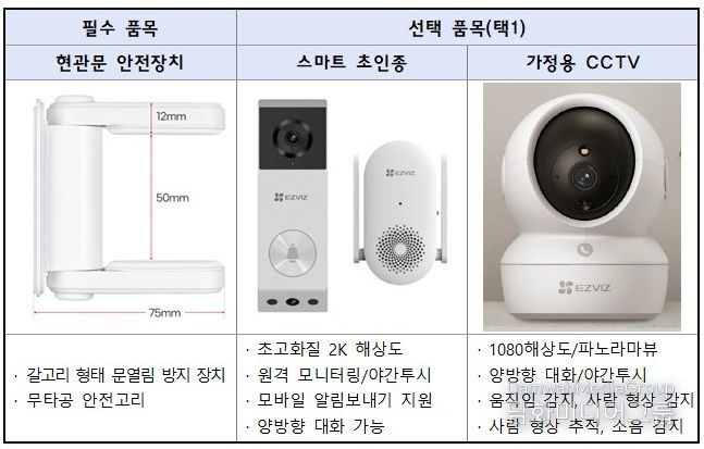 ‘은빛SOL 안심홈세트’는 기본 안전장치와 선택형 보안기기로 구성됐다. 선정자에게는 ▲현관문 안전장치를 기본 제공하며 ▲스마트초인종 ▲가정용 CCTV 중 1가지를 선택해 지원한다.