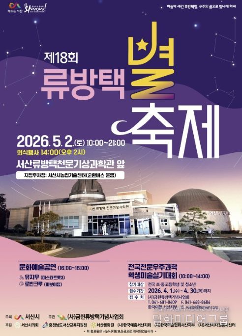 시민행정신문 기자 | 충남 서산시는 오는 5월 2일 류방택천문기상과학관 일원에서 제18회 류방택 별축제를 개최한다고 밝혔다.