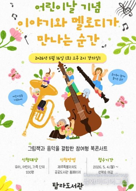 문정희 탐라도서관장은 “가정의 달을 맞아 건강한 가족 문화를 형성하고, 어린이들이 이야기와 음악을 함께 접할 수 있는 기회를 통해 문화 감수성이 향상되길 바란다”고 말했다.