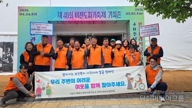 시민행정신문 강갑수 기자 | 신둔면지역사회보장협의체는 4월 28일 제40회 이천 도자기 축제장에서 복지 사각지대 발굴을 위한 홍보 캠페인을 실시했다. 많은 인파가 찾은 축제 현장에서 이웃을 한 번 더 돌아보자는 메시지를 전하는 자리였다.