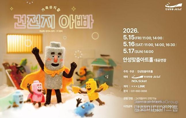 가족의 일상을 지탱하는 보이지 않는 유대와 사랑을 ‘건전지’라는 유쾌한 상상력으로 풀어낸 화제작, 가족뮤지컬 '건전지 아빠'가 5월 안성맞춤아트홀 무대에 오른다.