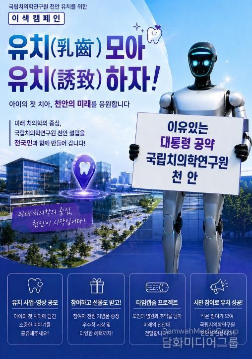 천안시가 어린이 성장의 상징인 ‘유치(乳齒)’를 매개로 국립치의학연구원 천안 설립을 위한 범국민적 공감대 형성에 나선다.