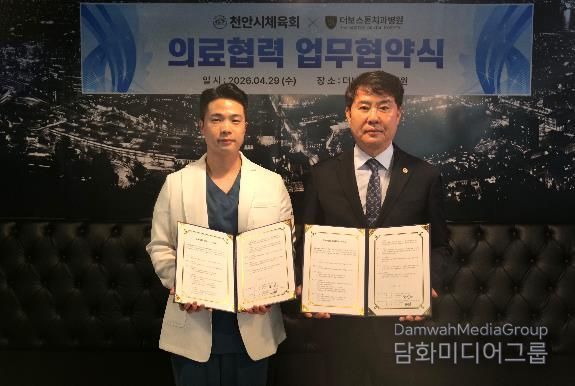 시민행정신문 강갑수 기자 | 천안시체육회와 더보스턴치과병원은 지난 29일 더보스턴치과병원에서 체육인의 건강 증진과 복지 향상을 위한 업무협약을 체결했다.