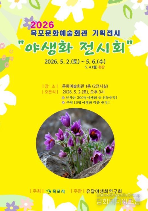 이번 전시는 5월 2일부터 6일까지 목포문화예술회관 2전시실에서 열리며, 자생 야생화와 희귀식물 등 약 300점이 전시된다.