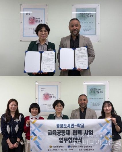 시민행정신문 기자 | 경상북도교육청 청송도서관은 4월 29일 진보초등학교와 '2026년 공공도서관-학교 교육공동체 협력 사업'운영을 위한 업무협약(MOU)을 체결했다.