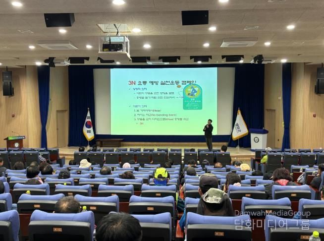 군은 지난 28일 군청에서 현업근로자 200여 명이 참석한 가운데 반복 작업과 부적절한 자세로 발생할 수 있는 근골격계 질환 예방 교육을 진행했다.