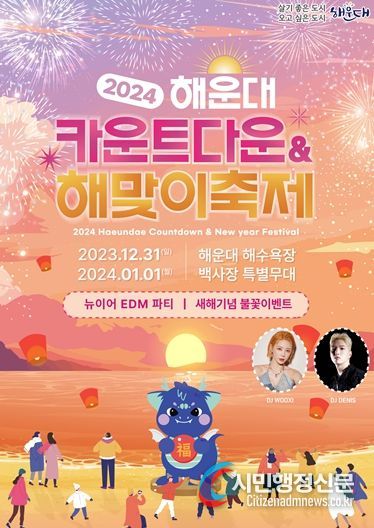 해운대구는 해운대해수욕장에서 12월 31일에는 ‘2024 카운트다운 축제’를, 1월 1일에는 ‘해맞이축제’를 개최한다. 시민들이 2023년을 잘 마무리하고 희망찬 새해를 맞이하길 바라는 마음으로 준비한 행사다.