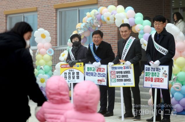 최교진 교육감을 비롯한 참석자들은 교통안전 어깨띠를 착용하고 유치원 정문, 횡단보도 등 통학로 곳곳에서 처음 등원하는 원아들을 환영했다.