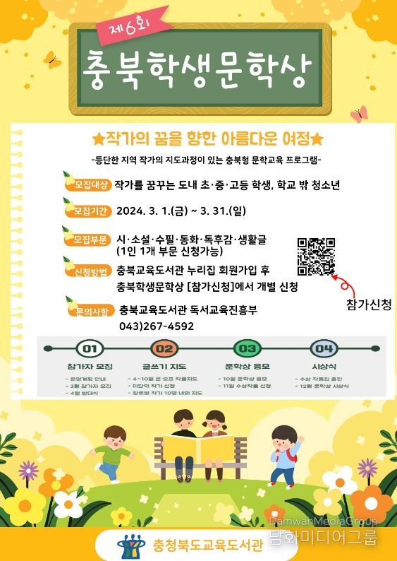 시민행정신문 김지은 기자 | 충청북도교육청 직속기관 교육도서관이 문학에 관심과 소질이 있는 학생들에게 창작 기회를 제공하기 위한 ‘제6회 충북학생문학상’ 참가 학생을 모집 중이다.