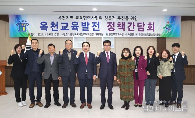 정책간담회에는 윤건영 충청북도교육감과 황규철 옥천군수, 이숙경 옥천교육지원청 교육장, 이병우 옥천군의회 부의장, 옥천군 송윤섭 의원 등이 참석했다.