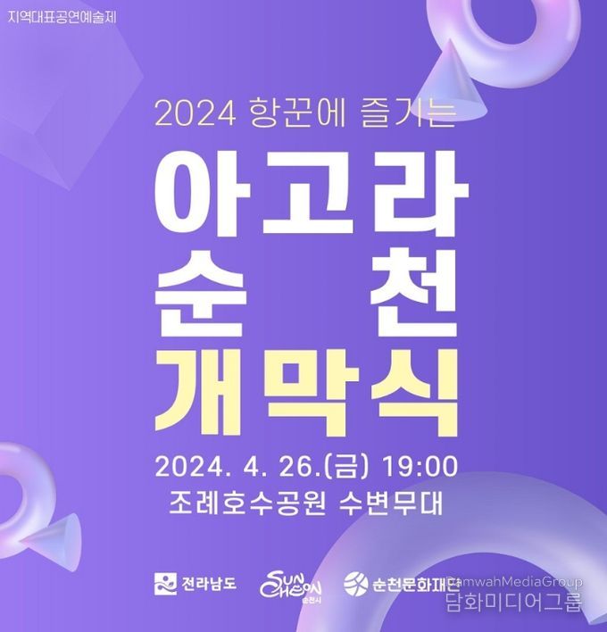 시민행정신문 강갑수 기자 | 순천문화재단은 오는 26일 오후 7시 조례호수공원 수변무대에서‘2024 항꾼에 즐기는 아고라 순천’개막식을 개최한다고 밝혔다.