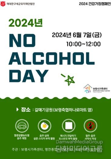 시민행정신문 기자 | 보령시는 7일 갈매기 공원(보령축협하나로마트 옆)에서 시민을 대상으로 건강가정캠페인‘No Alchol Day’(노알코올데이)를 진행했다고 밝혔다.