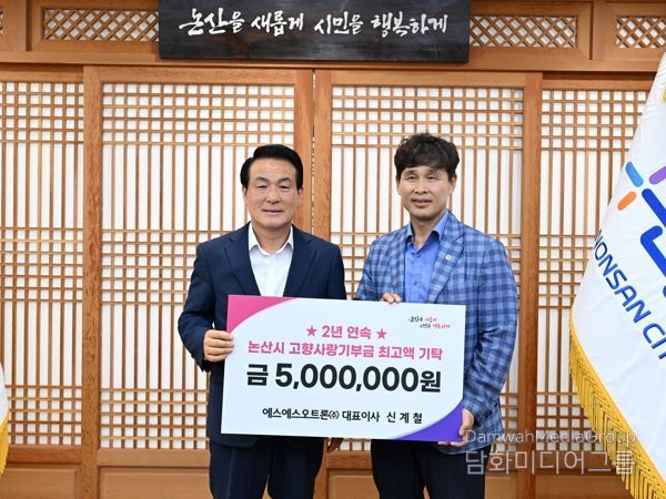 이에 대해 백성현 논산시장은 "신계철 대표님의 꾸준한 고향사랑 실천에 깊은 감사를 드린다”며 "출향 인사의 관심과 사랑이 논산 발전의 큰 힘이자 지역 청년들에게 희망과 자부심을 불어넣어 줄 것”이라고 말했다.